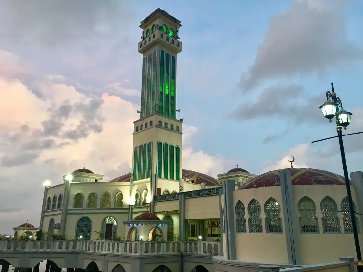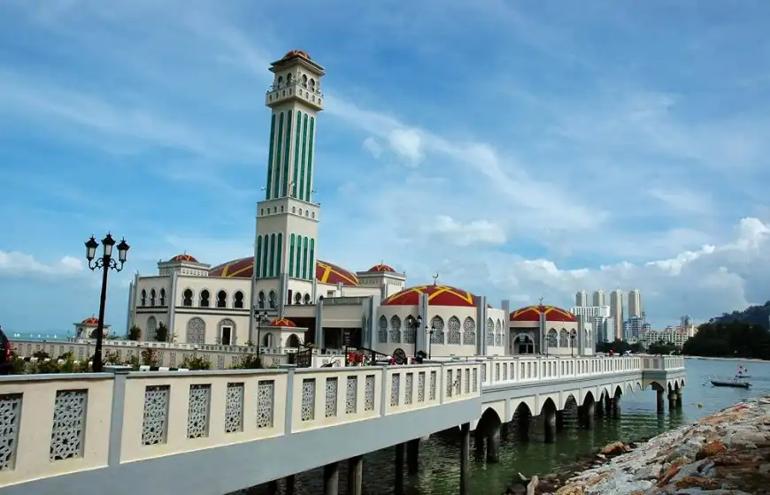 هو مسجد جزيرة بينانق العائم والذي يبدو بمظهرة الرائع تحفة معمارية جذابه ويقع في مكان مميز على البحر، مما يزيده جمالاً وروعة. ويخيل لناظرين اليه وكانه يطفوا على الماء وهو كالعائم والشامخ بجمال منظره وبتصميمة الحديث الذي زادته جمالا الزخارف المغربيه وايضا مآذنه المذهلة بارتفاعها والمتميز بانورامامية مذهلة على البحر.